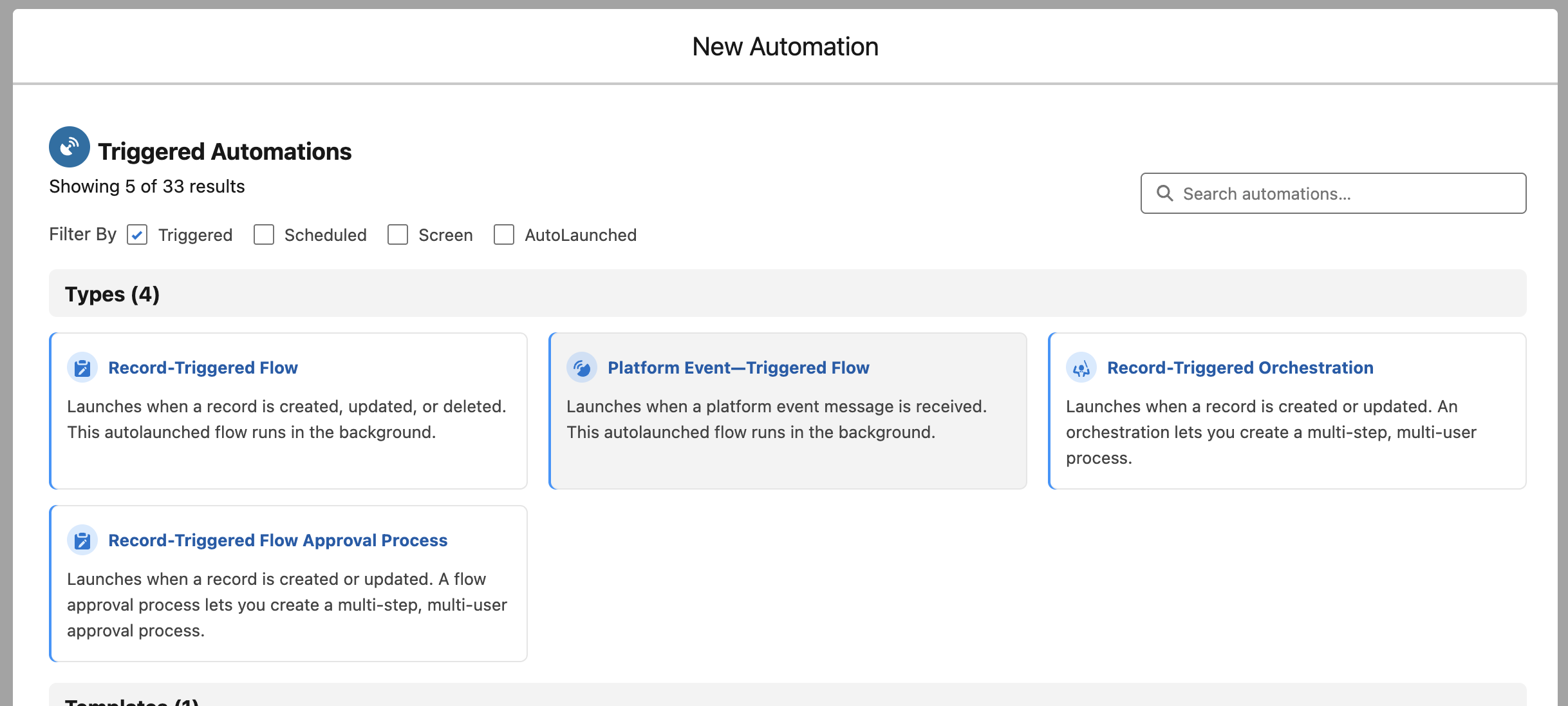 In the platform event selection screen, search for and select the type of event you want to capture.