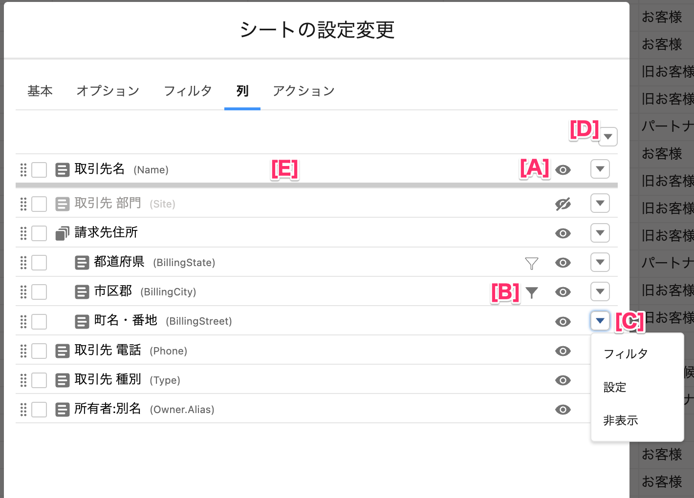 ### 列の設定の変更 <a href="#change-filter-setting" id="change-filter-setting"></a>