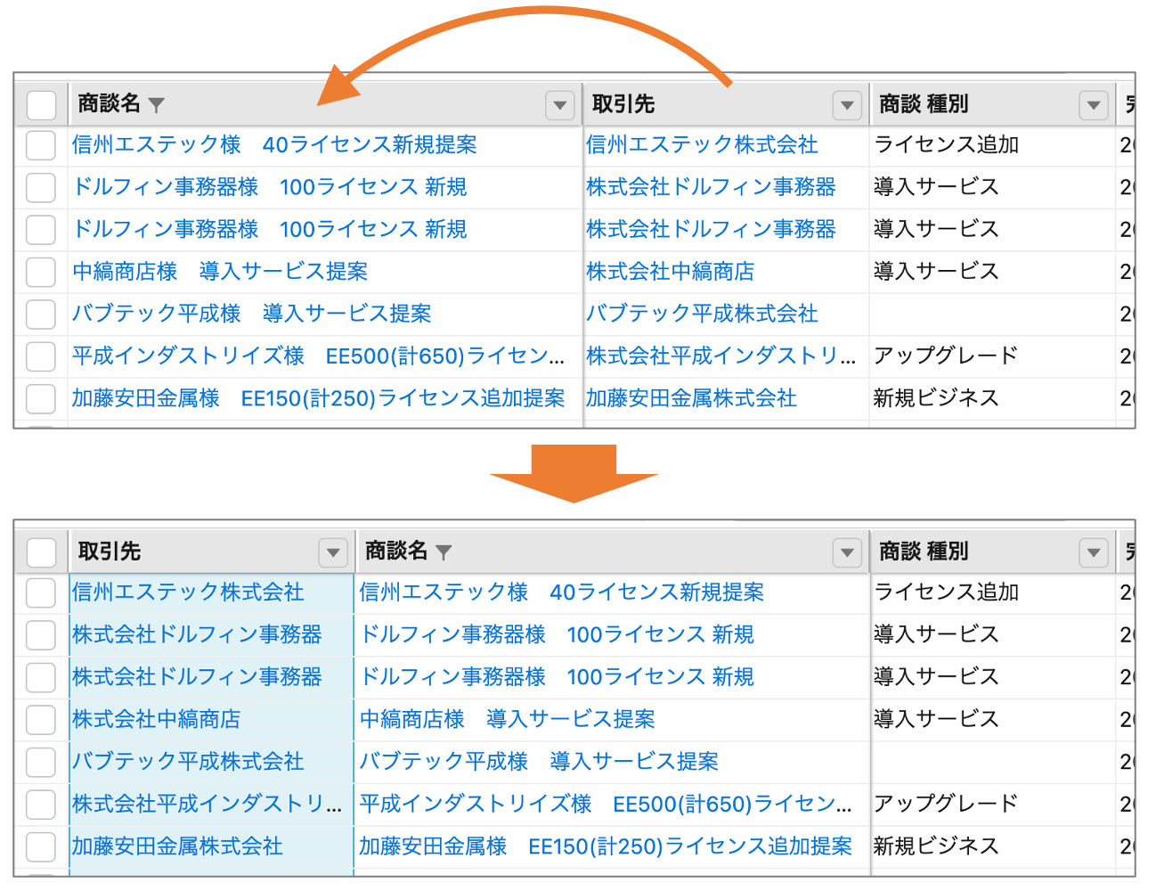 反対に、列の固定を外したい場合は固定されていない列の列ヘッダにドラッグ&ドロップします。